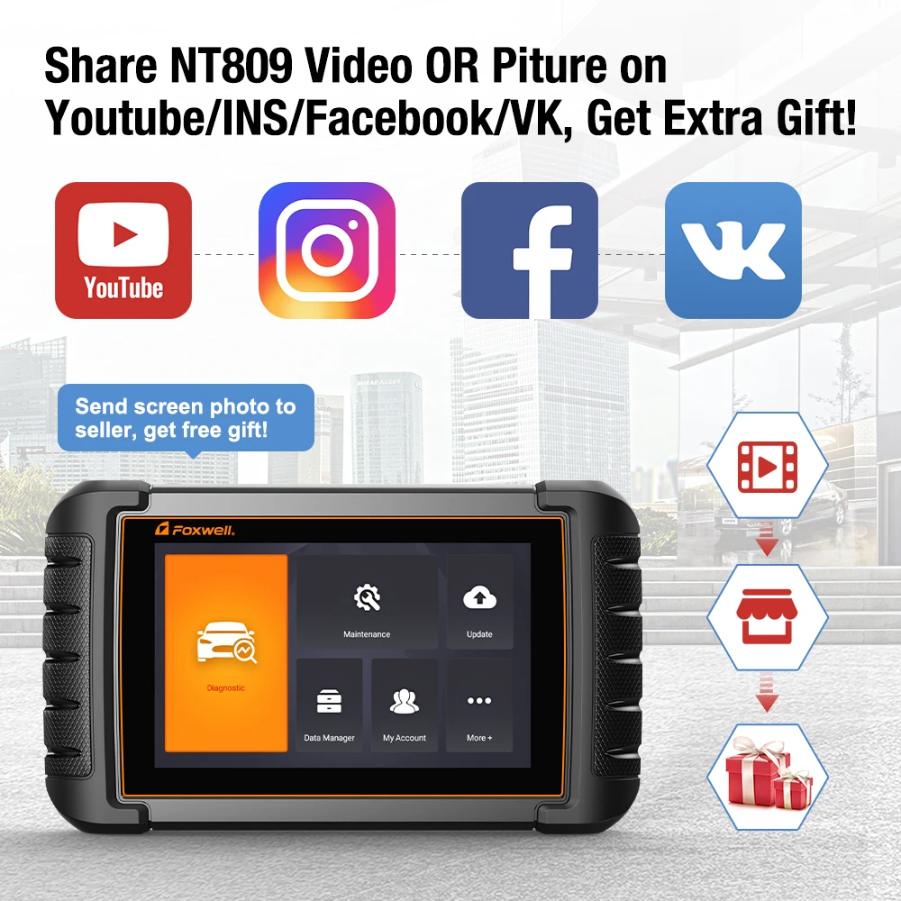 Compartilhe vídeo ou fotos NT809 no Youtue/ins/Facebook/VK, receba um presente extra!