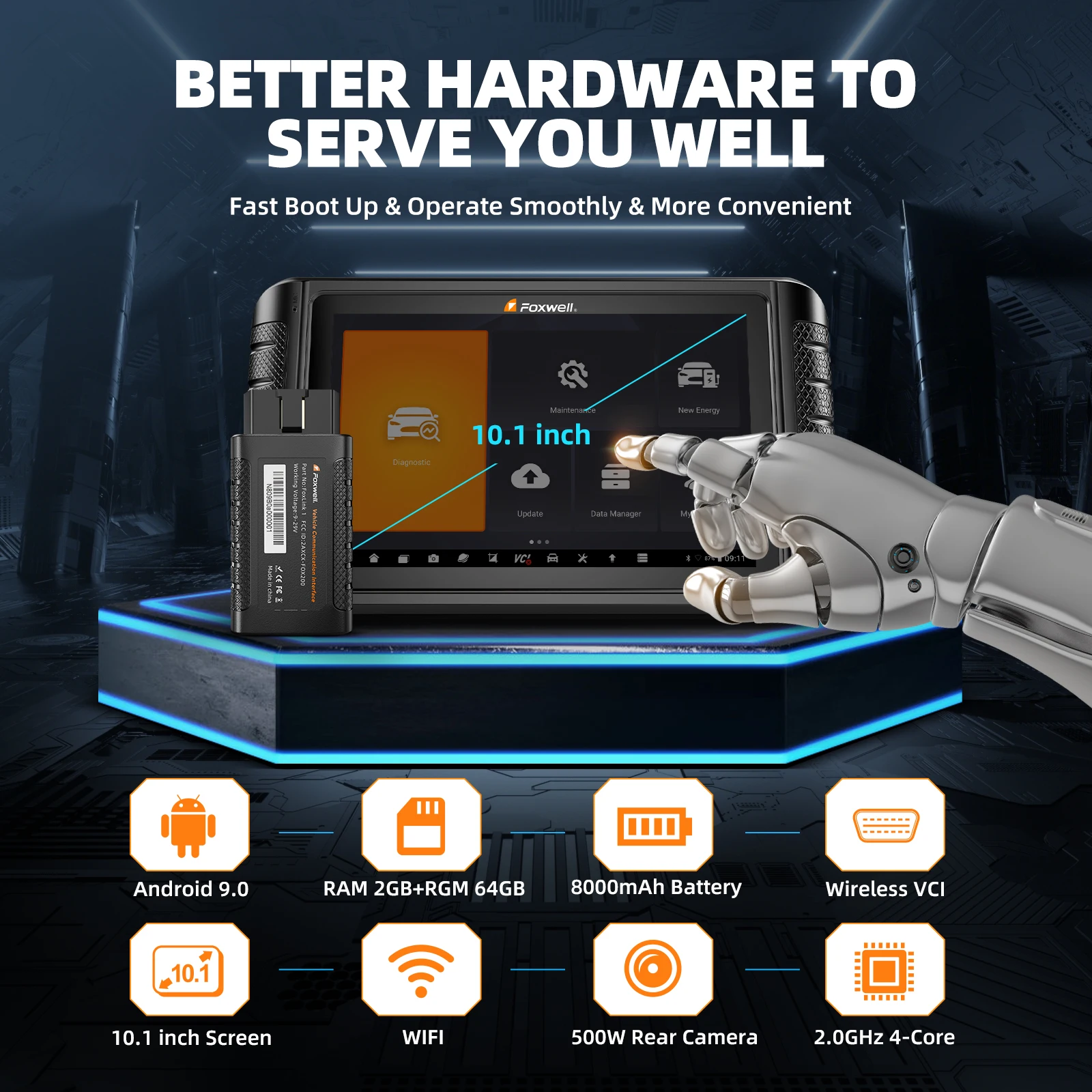 NT1009 é a versão mais alta dos scanners de diagnóstico da Foxwell atualmente, que é destacada por seu